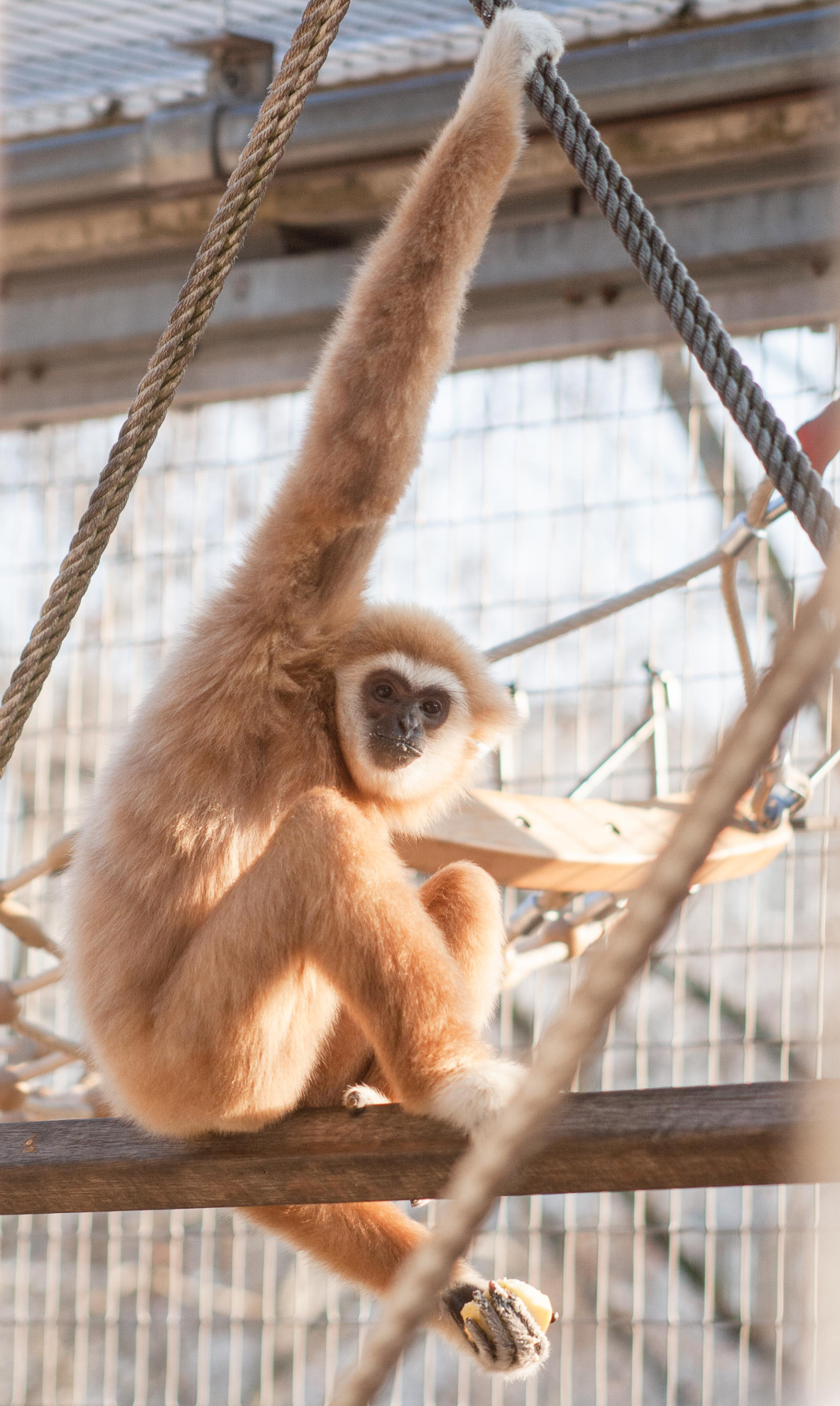 Flächennutzung zunehmend vernichtet. Hinzu kommt die illegale Jagd für den Heimtierhandel oder die traditionelle chinesische Medizin. Wie ihre großen Verwandten, die Gorillas oder Orang-Utans, sind diese sogenannten „kleinen Menschenaffen“ daher stark gefährdet. Um auf die Bedrohung aufmerksam zu machen, wurde der Gibbon von der Zoologischen Gesellschaft für Arten- und Populationsschutz e.V. und dem Verband der Zoologischen Gärten e.V. zum „Zootier des Jahres 2019“ gewählt.