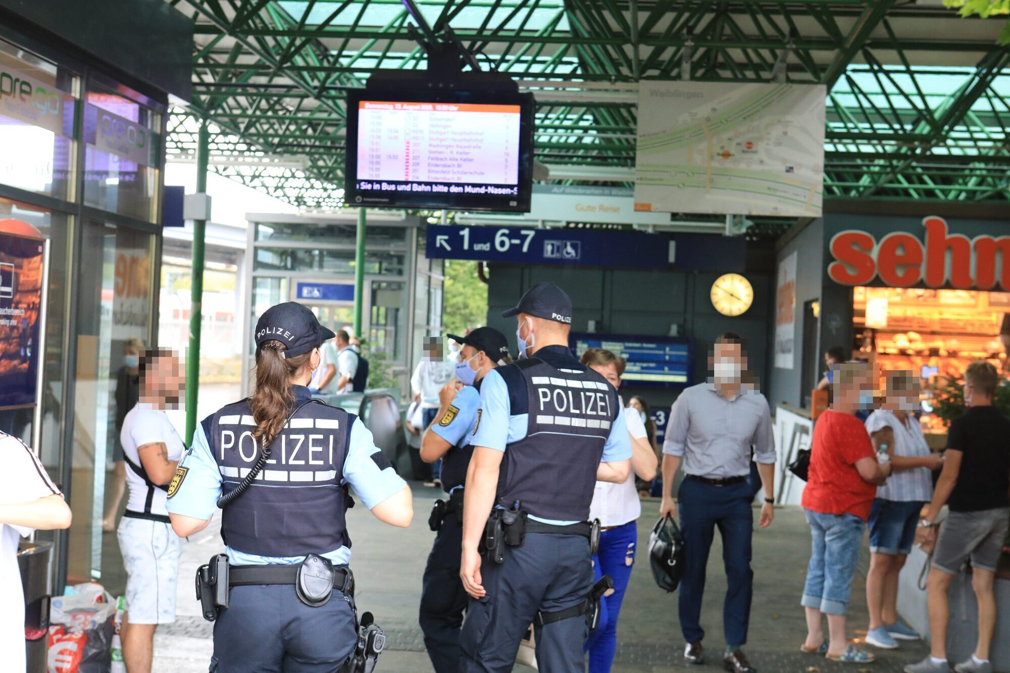 Polizisten kontrollierten am Sonntag (30.8.) zwischen 17.00 und 19.45 Uhr die Einhaltung der Maskenpflicht in den Linien U2, U9, U34, der Buslinie 41 sowie an der Haltstelle "Schwabstraße" in Stuttgart.
