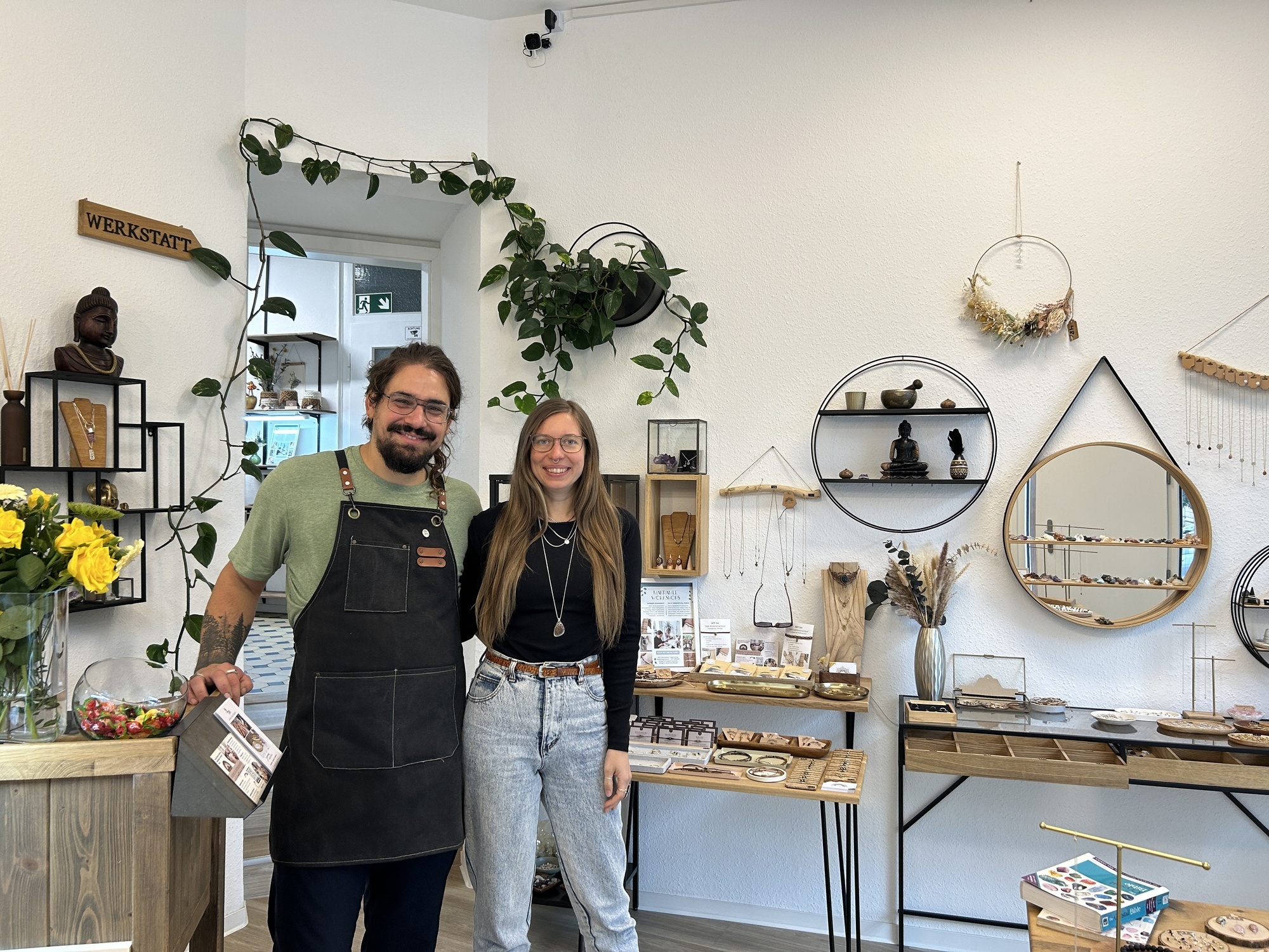 Bevor sie den Laden vor rund 1,5 Jahren eröffneten, begann ihre Geschichte in Südamerika. Camilo, der aus Medellín in Kolumbien kommt, ist in einer kreativen Familie aufgewachsen. Seine Eltern hatten ein eigenes Unternehmen, in dem sie Kirchenfenster anfertigten. Weil das Geld schon immer knapp war, wollte sich Camilo neben seinem Studium etwas dazuverdienen. Aus Glasresten der Kirchenfenster und Draht fertigte er kurzerhand Ohrringe an. Irgendwann habe ihm das aber nicht mehr gereicht und er wollte professioneller werden: Als Praktikant arbeitete er bei einem Juwelier und Goldschmied in Kolumbien. Hier lernte er das Handwerk kennen und sammelte Erfahrungen, bevor er sich dazu entschied zu reisen.