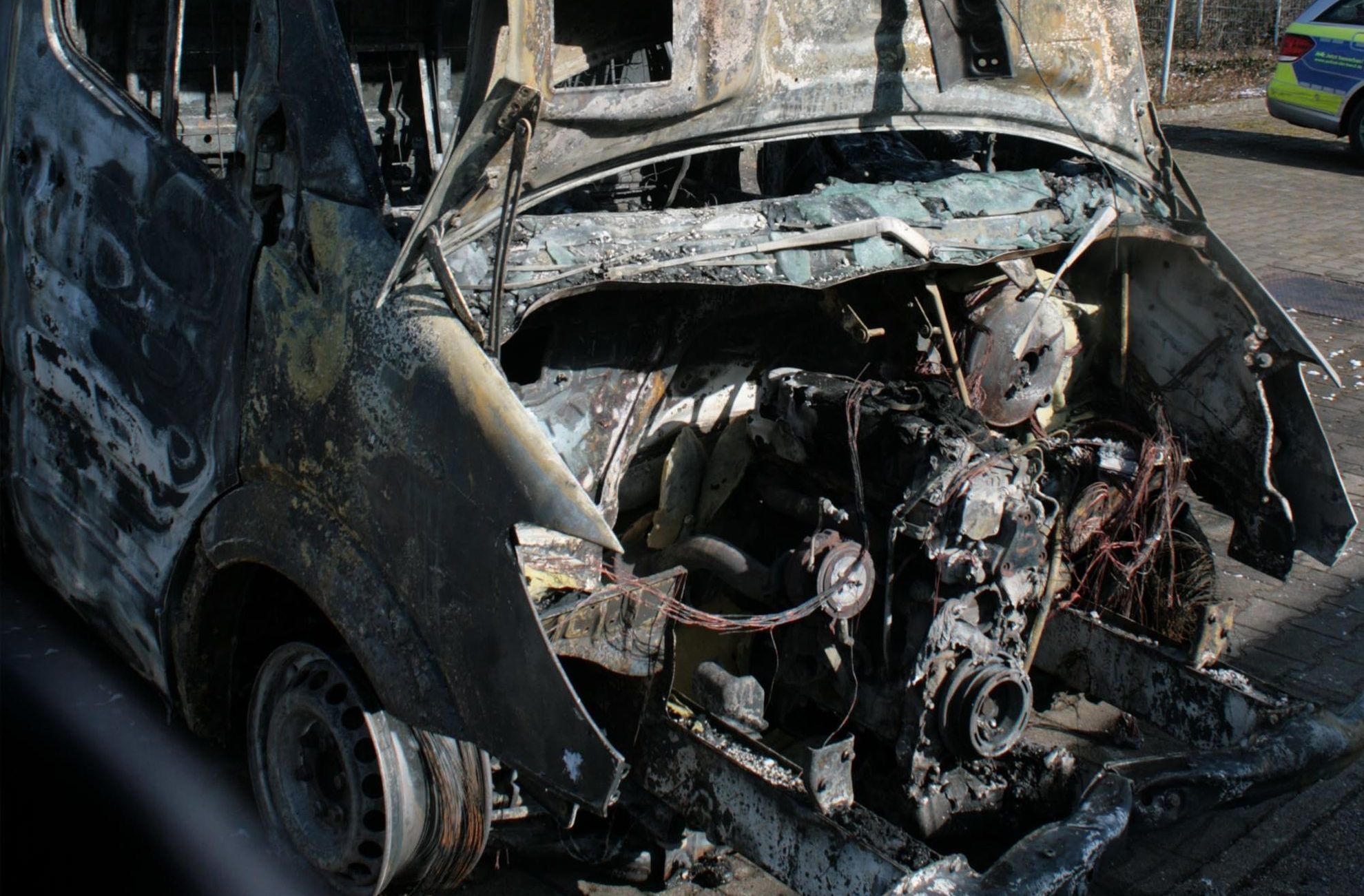 Danach fuhren die Täter davon und setzten den Transporter auf einer Landstraße in Brand. Ein Autofahrer meldete das Feuer gegen 4.30 Uhr, woraufhin die Feuerwehr alarmiert wurde. Bei deren Eintreffen war das Fahrzeug nahezu komplett ausgebrannt. Wenige Stunden später setzten sie auch den zweiten Lkw in Brand und versuchten so, ihre Spuren zu vernichten, wie die Polizei vermutet. Das brennende Fahrzeug wurde kurz vor 8 Uhr gemeldet, woraufhin die Feuerwehr alarmiert wurde.