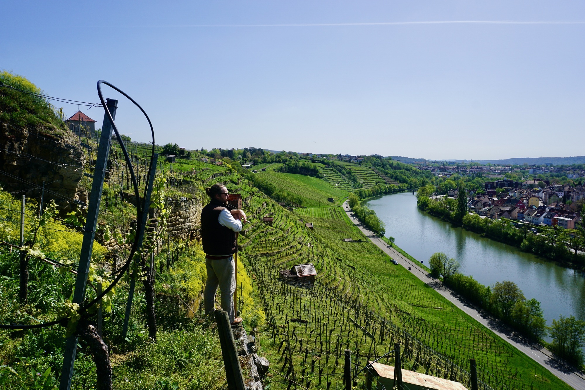 Von hier oben hat man eigentlich alles im Blick. Der Fernsehturm auf Degerlochs Höhen am Horizont, der Neckar unten im Tal und in der Ferne blitzt sogar die Kuppel der Grabkapelle auf dem Württemberg auf. Und wer die steilen Stufen in den Weinbergen unterhalb von Steinhaldenfeld nach oben gekraxelt ist, bekommt eine kleine Ahnung davon, was es bedeutet, hier Tausende Reben zu schneiden, zu pflegen und im Herbst dann zu lesen. Mit Maschinen kommt man hier nicht weit, hier ist alles Handarbeit. Axel Musch liebt genau das. Das Urtümliche, das Echte. Weshalb er und seine Mitstreiter die Begeisterung für das Winzer-Handwerk wecken wollen. Vor allem in der Steillage.