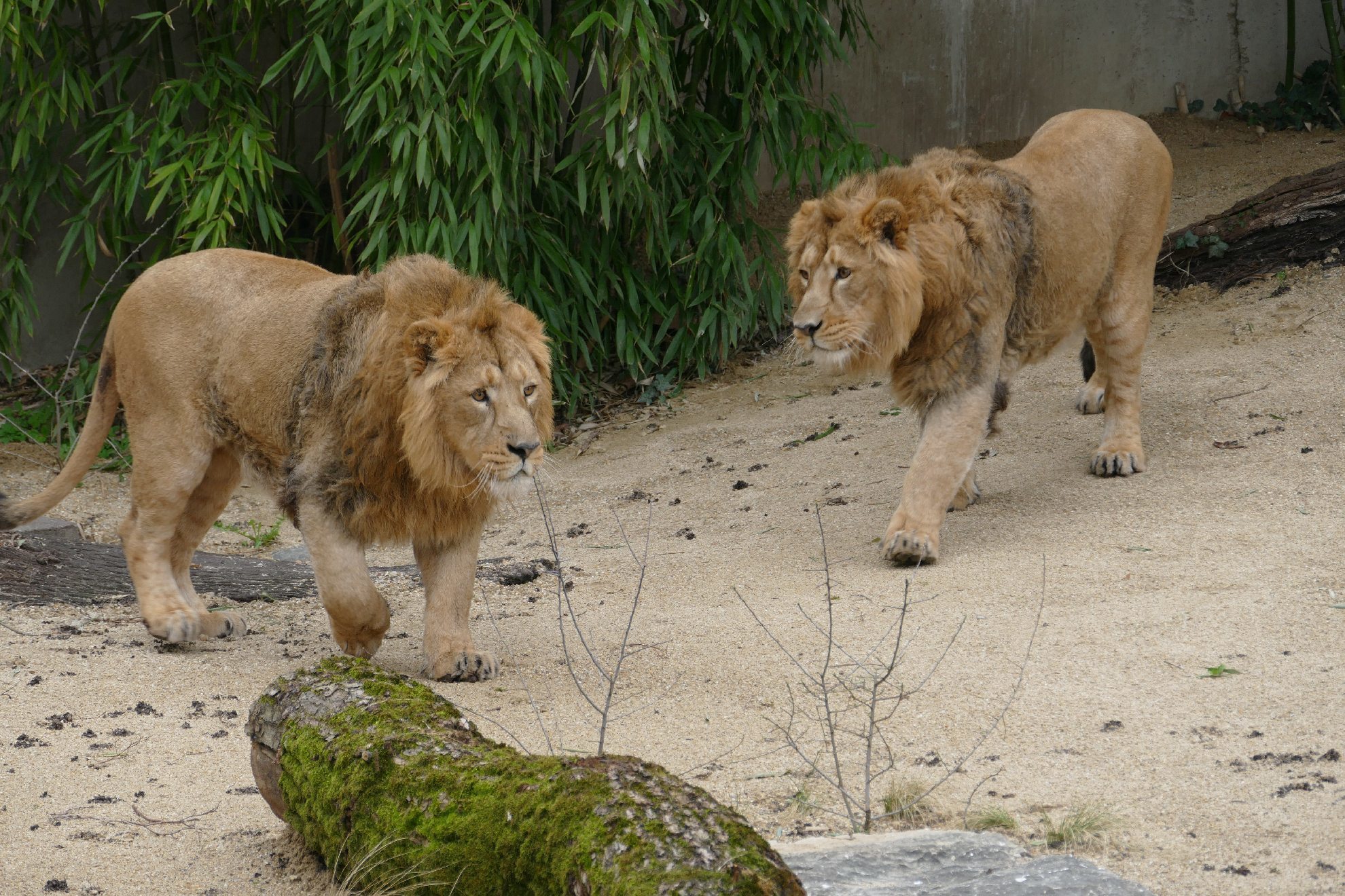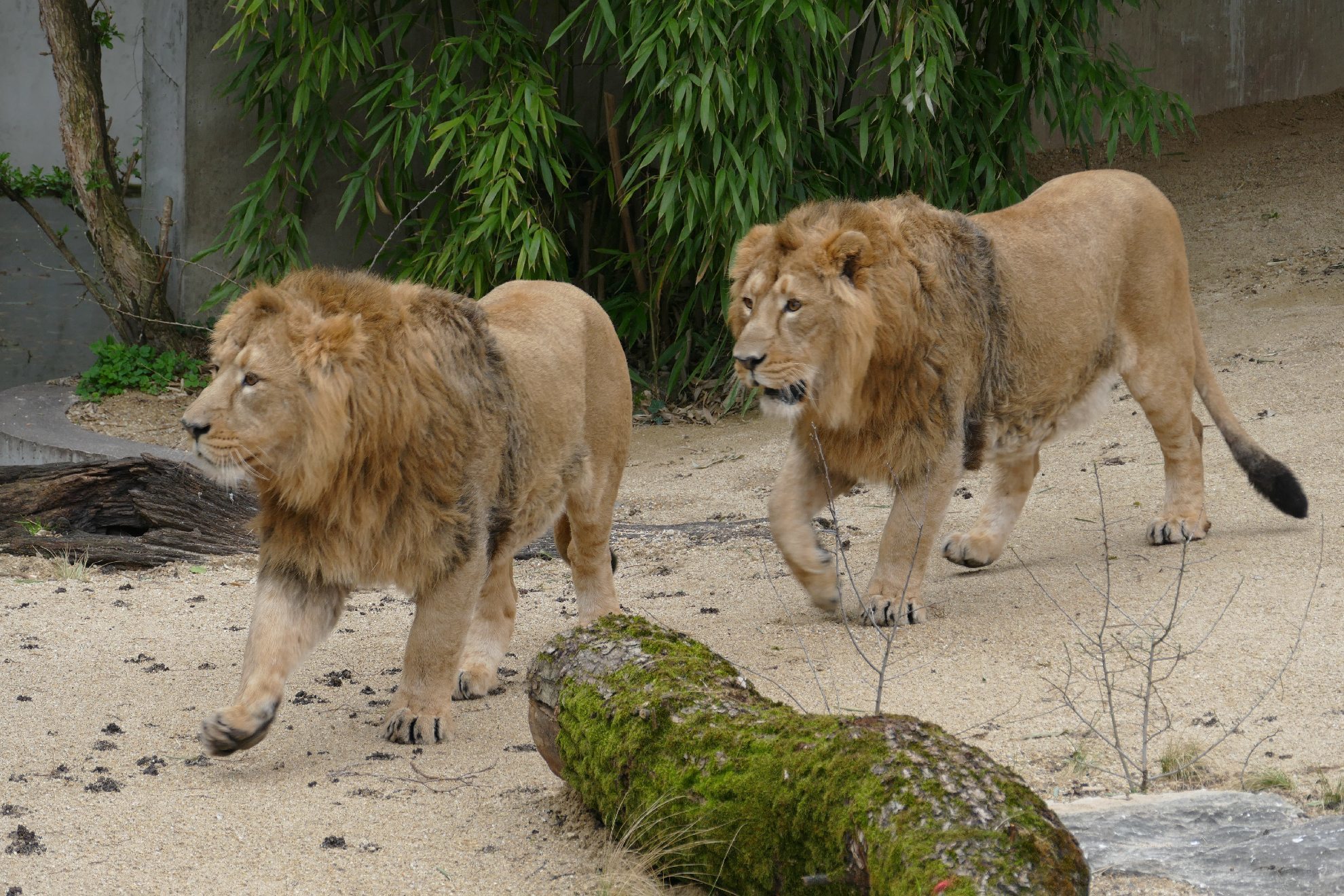 Die Löwen sind zurück in der Wilhelma. Am Freitag um 11 Uhr durften die Brüder zum ersten Mal in ihr Außengehege.