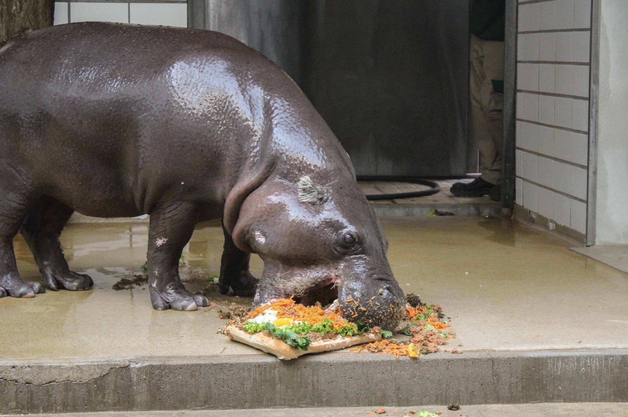Hannibal war auch hochbetagt noch mobil und munter. Nachdem er im vergangenen Sommer etwas gekränkelt hatte, konnte er seinen runden Geburtstag, der mit einer Feierstunde vor einer Heerschar von Journalisten und Besuchern begangen wurde, in vollen Zügen genießen. Während der Methusalem sich im Außengehege gerne sonnte, lag er im Flusspferdhaus mit Vorliebe in dem Becken mit gewärmten Cannstatter Mineralwasser.