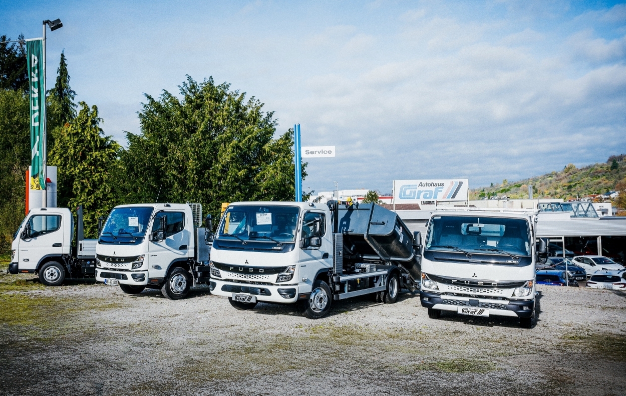 Groß ist das Autohaus Graf auch bei den „Großen“: Seit 1985 werden beim Fuso-Vertragspartner in Winnenden-Birkmannsweiler neben Kauf, Leasing und Finanzierung auch Wartungen und Reparaturen abgewickelt. Der Fuso Canter ist mit einer Tonnage von 3,5 bis 7,5 Tonnen bei Graf maßgeschneidert erhältlich. Der passende Fuso wird für jede Branche und für jeden Einsatz individuell zusammengestellt. Sämtliche Anforderungen an Höhe, Tragfähigkeit, Bauweise, Einzel- oder Doppelkabine oder Anhängelast werden berücksichtigt. Durch die hohe Nutzlast beim 7,5-Tonner ist der Fuso in der Garten- und Landwirtschaftsbranche und für den Einsatz im Baugewerbe besonders geeignet.