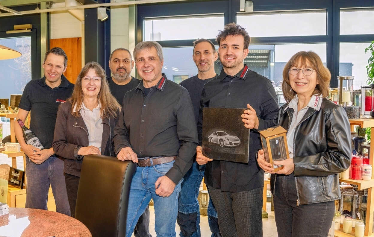 Die Leidenschaft und Liebe für das klassische Kunsthandwerk geht auf Alfred Schubert zurück, der vor mehr als 70 Jahren mit der Bearbeitung und Gestaltung von Grabmalen in Winnenden begonnen hat. „dr Schdoi“ ist bis heute der perfekte Werkstoff für die inzwischen zweite und dritte Generation des Familienbetriebs: „Naturstein bietet fantastisch viele Gestaltungs- und Anwendungsmöglichkeiten für den Grabmalbereich, aber auch fürs Bauen und Wohnen“, sagt Werner Schubert, der das Familienunternehmen mit Frau Ute und dem gemeinsamen 24-jährigen Sohn Christian führt - auch er ist begeisterter Steinmetz- und Bildhauermeister. Mit dem erfolgreich abgeschlossenen Übergang in die dritte Generation ist Schubert Marmor- und Granitwerk GmbH seit Jahrzehnten etabliert in der Herstellung von individuellen Natursteinarbeiten - vor Ort, von Hand auf traditionelle Weise sowie im technisch topmodernen Maschinenpark. „Hier ist alles möglich, was sich aus Stein machen lässt, wir sind von der Idee bis zur fertigen Grabstelle Ihr Ansprechpartner.“