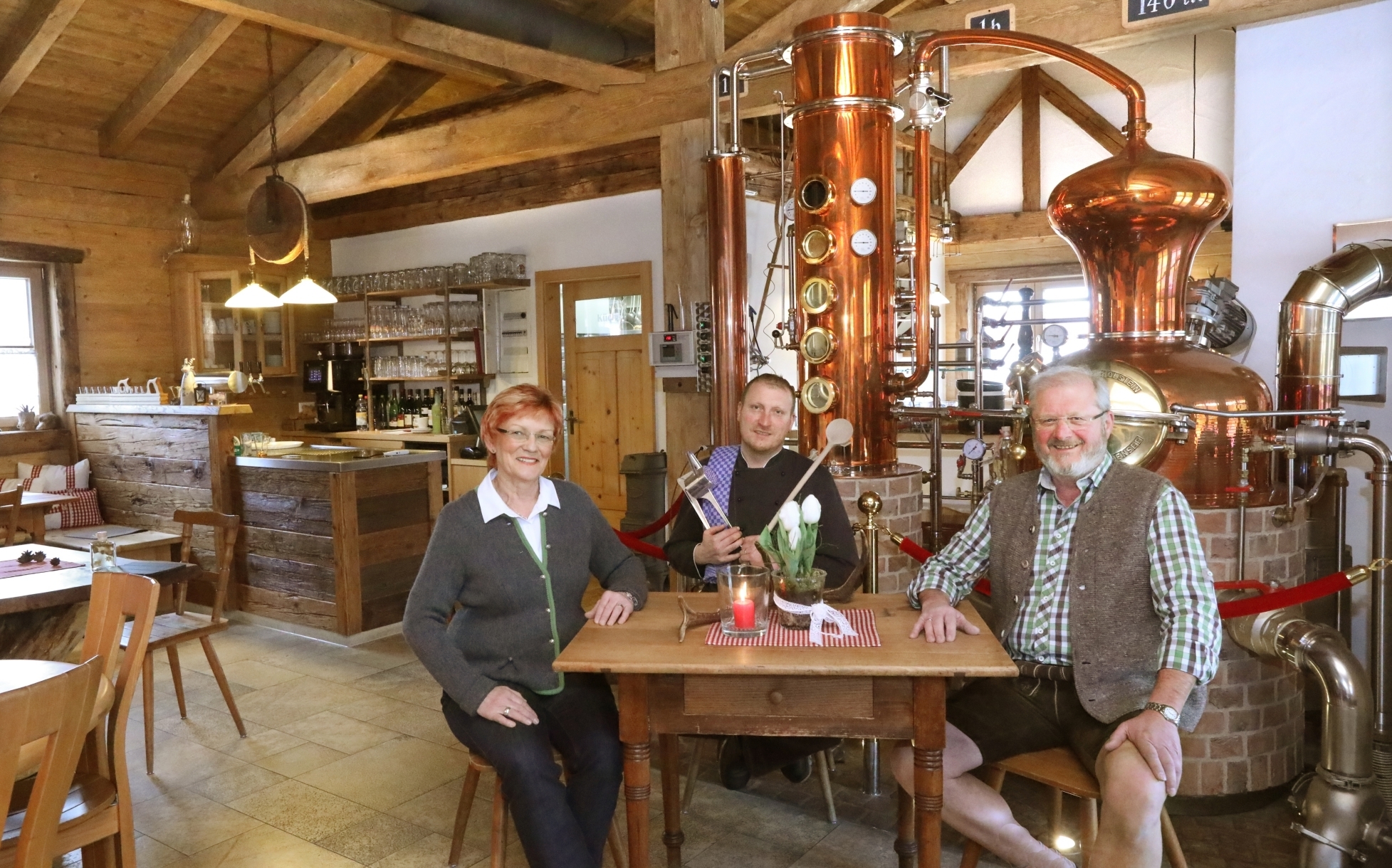 Hubschneiders besitzen das Brennrecht in der dritten Generation. Die Destillerie, an der sie feine Edelbrände erzeugen, ist der Hingucker mitten in der Wirtsstube. Für Firmen und größere Gruppen feuert Uli Hubschneider die Brennerei nach Terminvereinbarung gerne an und führt das Schnapsbrennen live vor. Eine reichhaltige Auswahl an Bränden wird im Getränkemarkt angeboten wie auch als Essensabschluss in der BrennAlp.