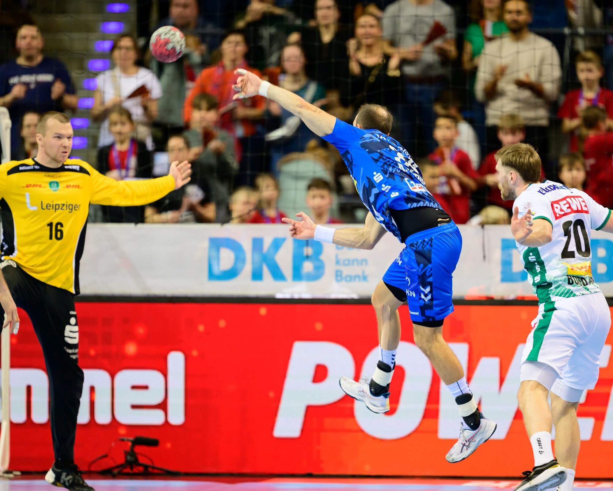 Stuttgart. Der „Tatort“ in der Stuttgarter Porsche-Arena ist am Sonntagabend 15 Minuten vor dem „Tatort“ in der ARD zu Ende gegangen: In einem nervenaufreibenden Spiel zwang der Handball-Erstligist TVB Stuttgart vor 4582 Zuschauern den äußerst widerspenstigen SC DHfK Leipzig mit 33:32 (14:17) in die Knie. Es flutschte nicht alles beim TVB, doch die unbändige Moral und der Glaube waren stets vorhanden. Nach 7:1 Punkten in Serie hat sich das Team nun sechs Punkte Polster auf