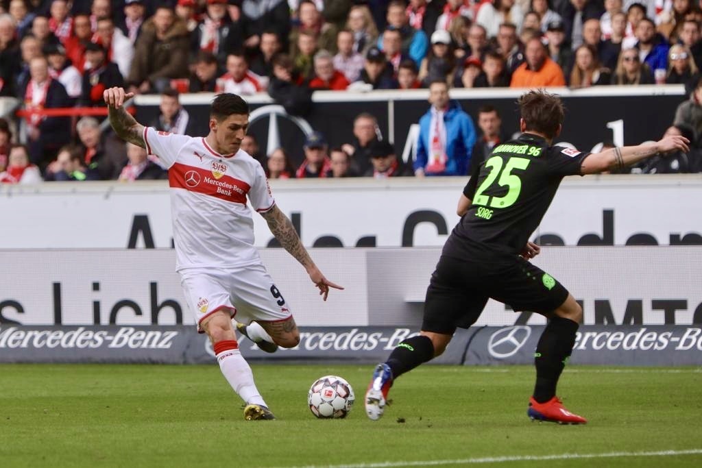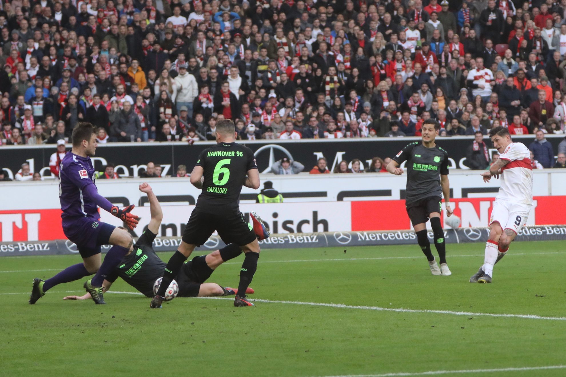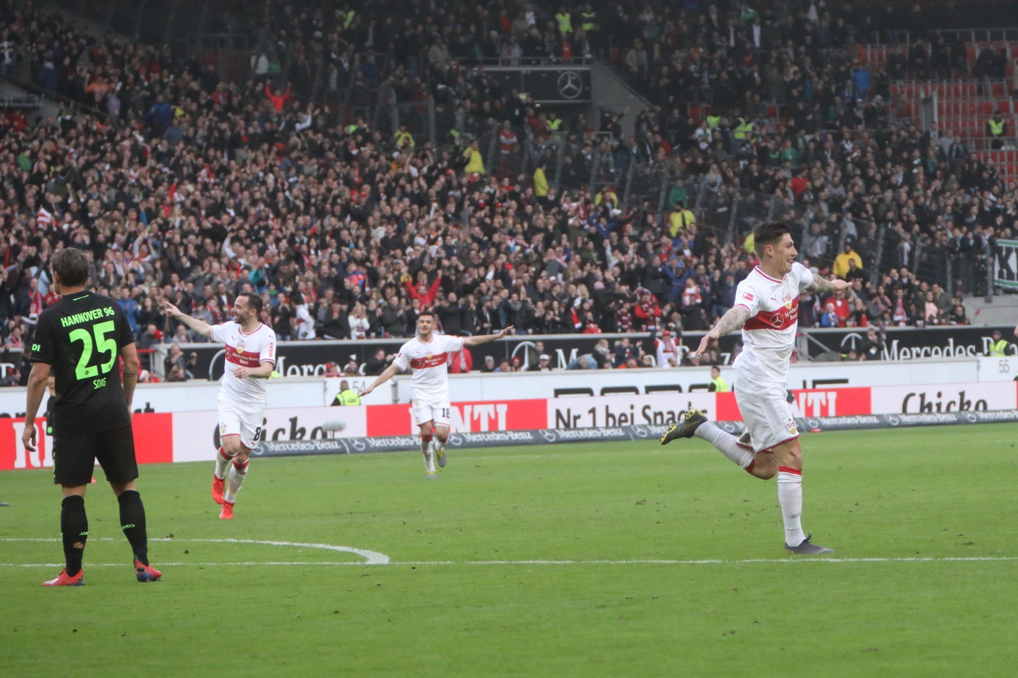 Wie schon im Bremer Weserstadion erwischten die Schwaben einen perfekten Start in die Partie. Zunächst traf Mario Gomez nach Zuspiel von Alexander Esswein nur den Pfosten (2.), doch nur einen Angriff später zappelte der Ball im Hannoveraner Tor: Steven Zuber hatte Gomez perfekt in Szene gesetzt und der Torjäger beendete seine seit Mitte Dezember andauernde Torflaute. Im Eins-gegen-Eins mit 96-Keeper Michael Esser blieb der 33-Jährige cool und schoss mit links sein 6. Saisontor (4.).