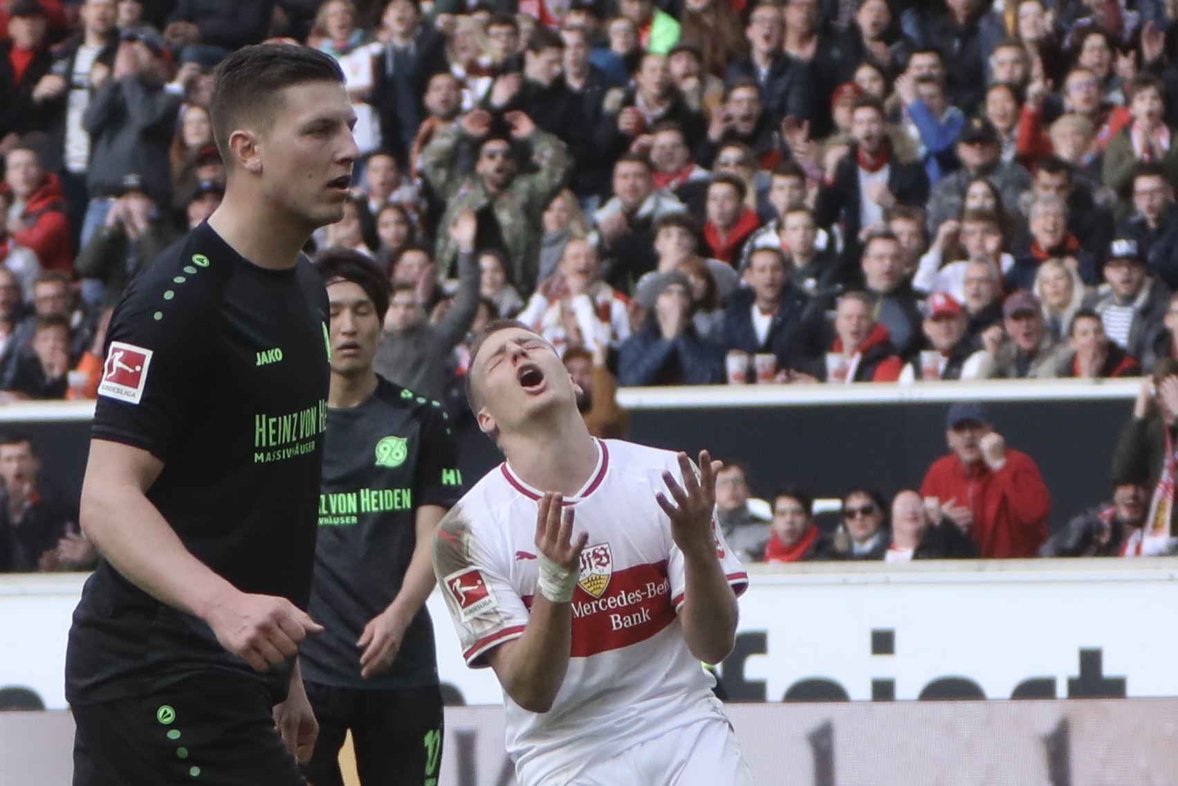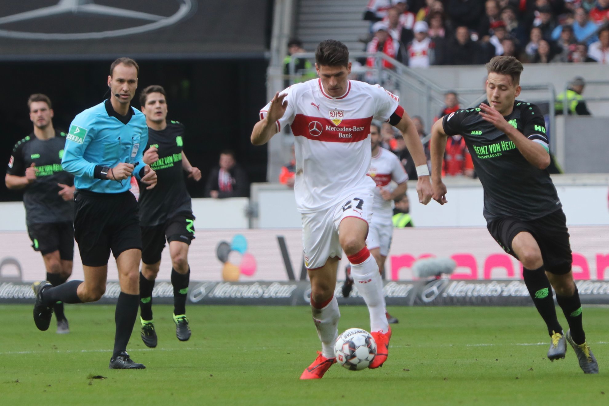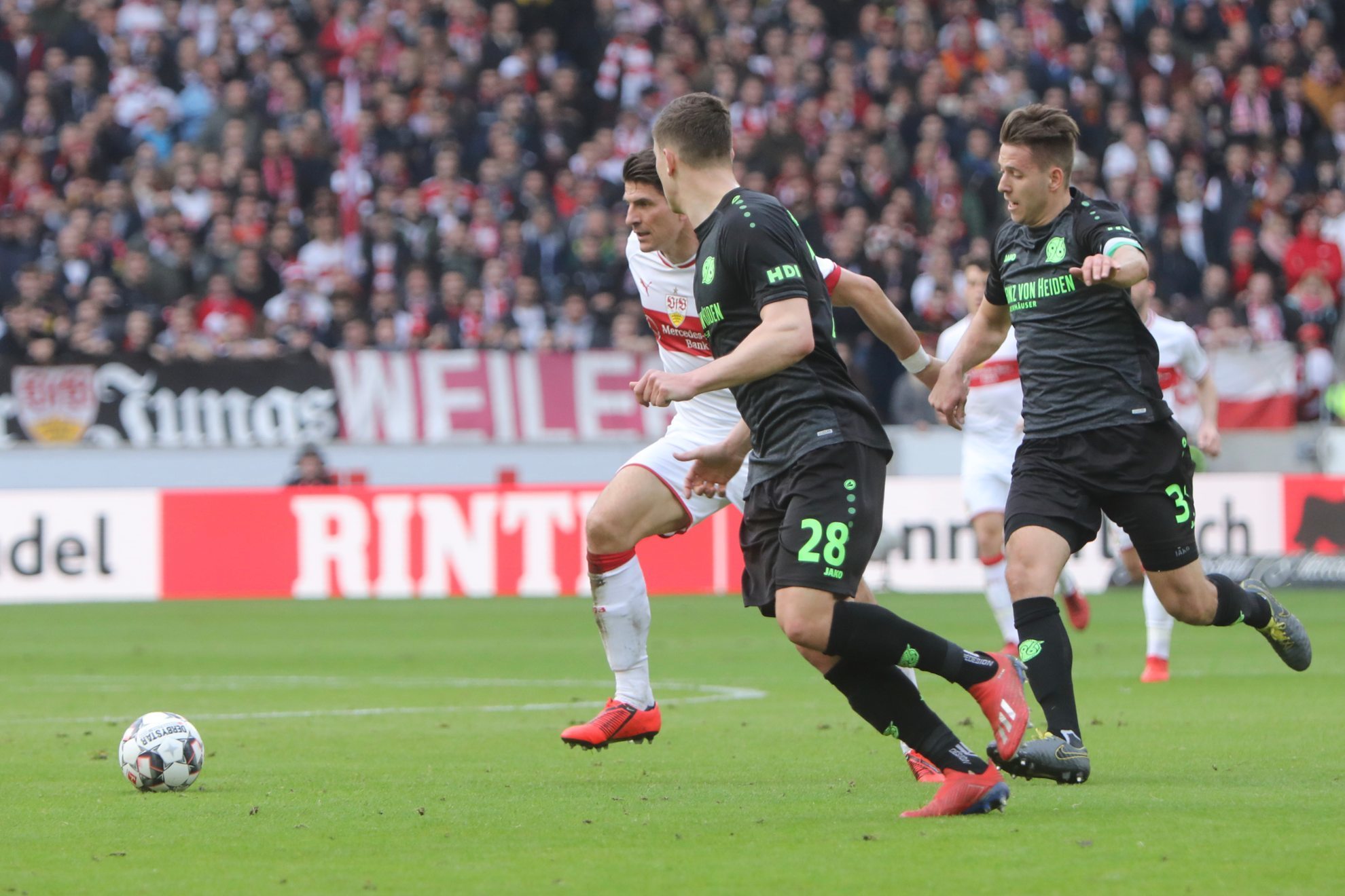 Wie schon im Bremer Weserstadion erwischten die Schwaben einen perfekten Start in die Partie. Zunächst traf Mario Gomez nach Zuspiel von Alexander Esswein nur den Pfosten (2.), doch nur einen Angriff später zappelte der Ball im Hannoveraner Tor: Steven Zuber hatte Gomez perfekt in Szene gesetzt und der Torjäger beendete seine seit Mitte Dezember andauernde Torflaute. Im Eins-gegen-Eins mit 96-Keeper Michael Esser blieb der 33-Jährige cool und schoss mit links sein 6. Saisontor (4.).