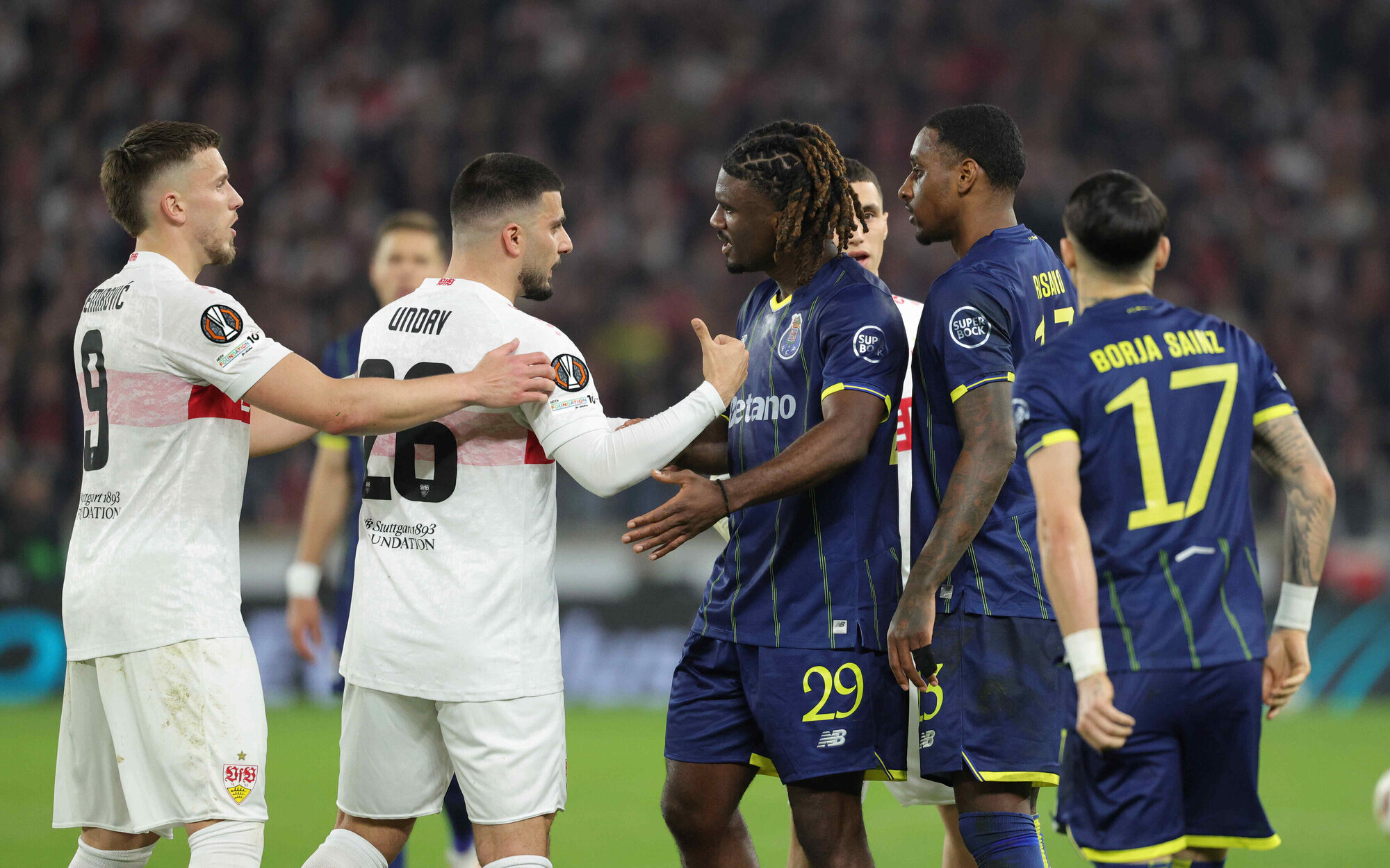 Vor allem wirkte es in der ersten Halbzeit fast so, als gäbe es nur dieses eine Spiel, das über Weiterkommen oder Ausscheiden entscheidet. Phasenweise lieferten sich die VfB-Profis mit den Portugiesen einen offenen Schlagabtausch, dabei waren nach dem Pausenpfiff noch in Summe 135 Minuten zu spielen. „Was mich ärgert, sind die acht Minuten.“ Die Phase, die zu den beiden Gästetreffern führte, sei „bedauerlich“, so Hoeneß. „Da haben wir kurzzeitig den Kopf verloren und haben zu schnell die Bälle verloren.“ Immer wieder ließen sich die VfB-Profis zudem auf kleine Scharmützel und hitzige Diskussionen mit den Portugiesen ein.