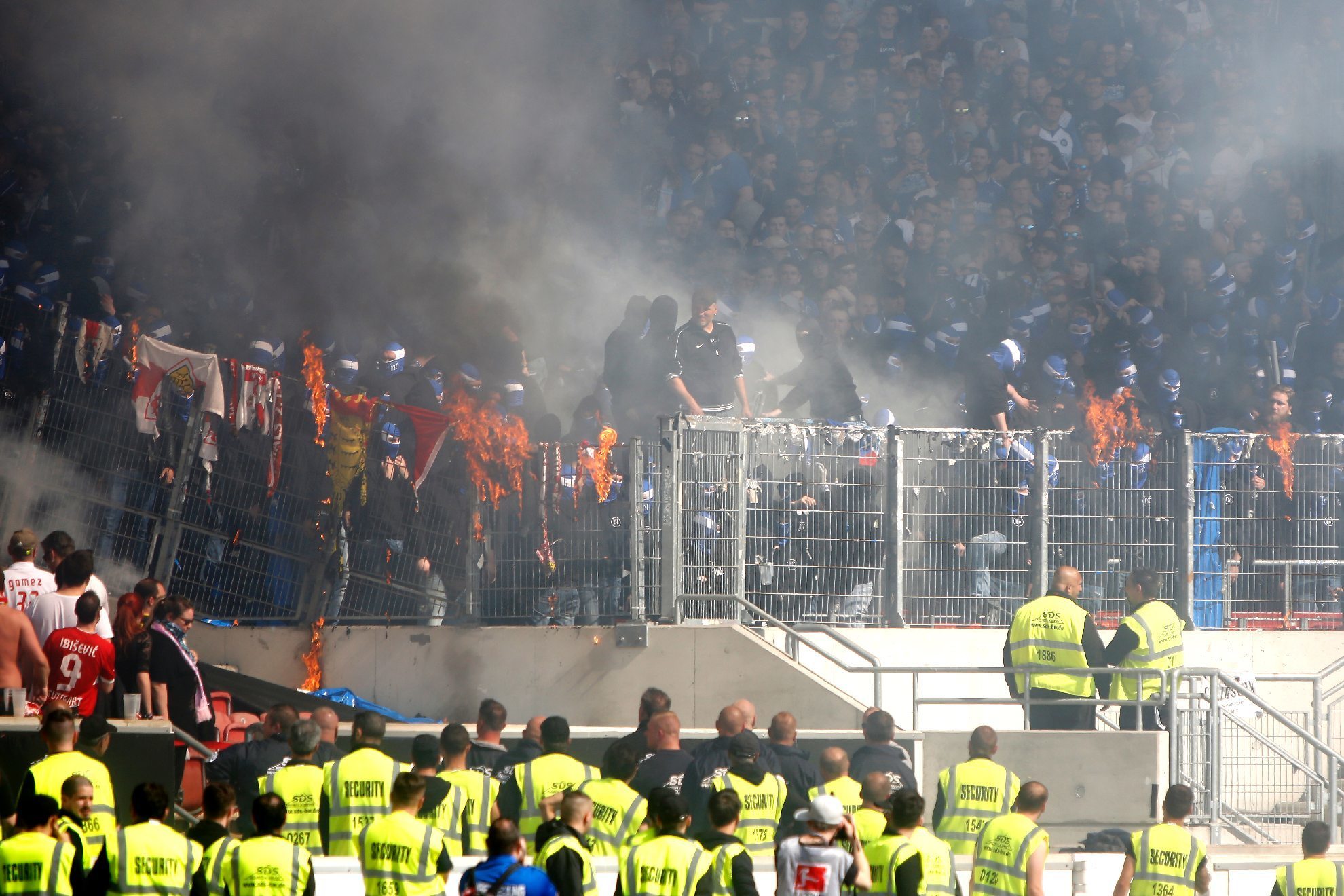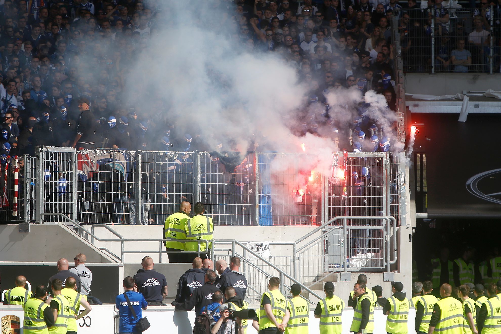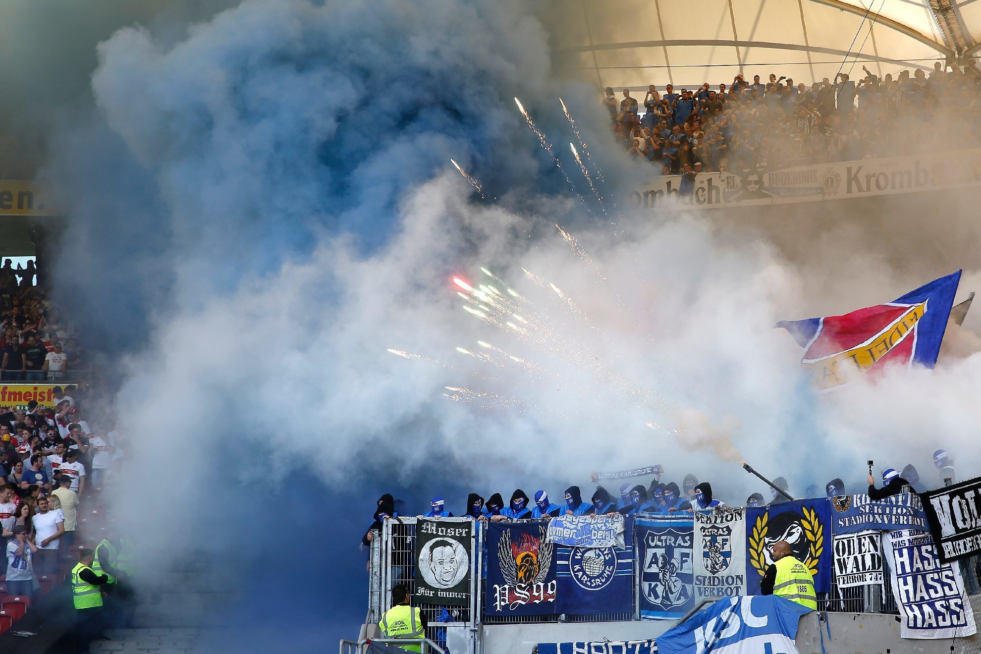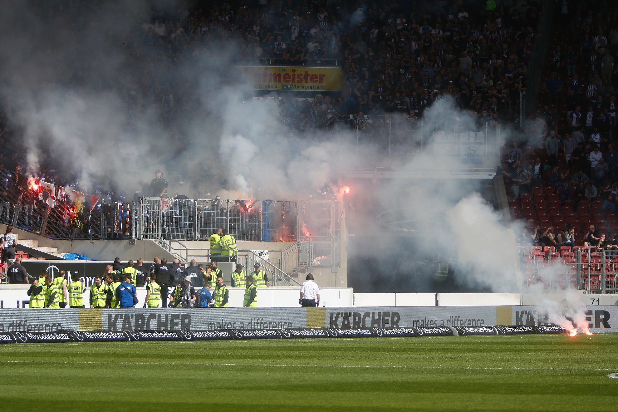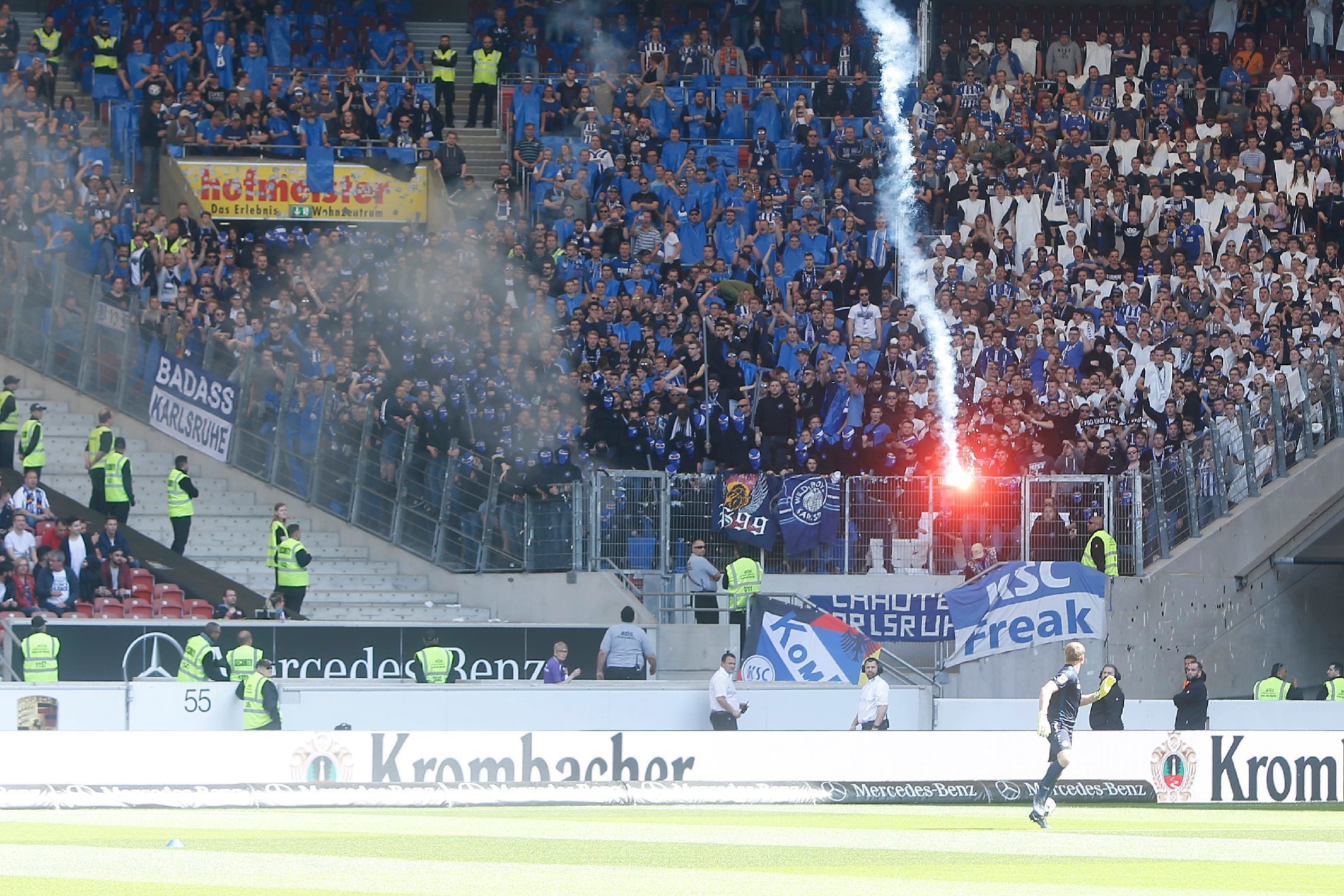 Mit Pyrotechnik und Feuerwerkskörpern sorgten einige KSC-Fans am Sonntag im Derby gegen den VfB Stuttgart (2:0) beinahe für einen Spielabbruch. Schiedsrichter Christian Dingert schickte beide Teams vor dem Anpfiff zur 2. Hälfte wieder zurück in die Kabine.