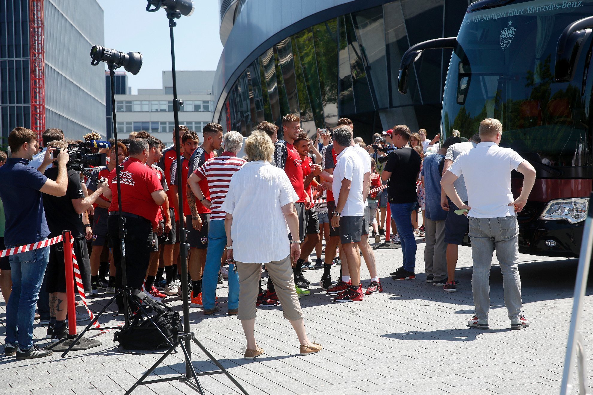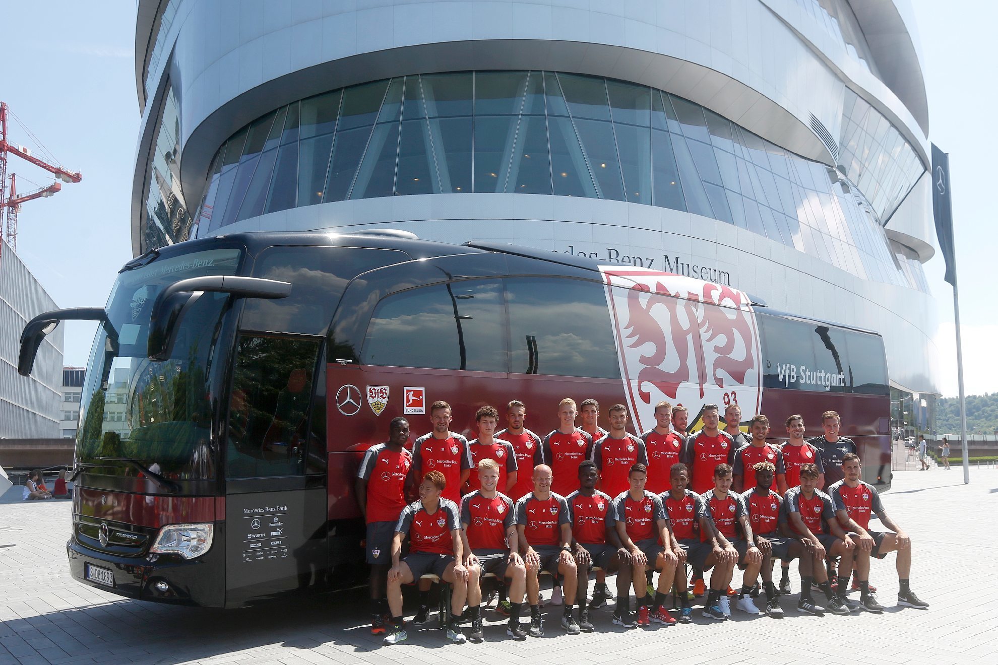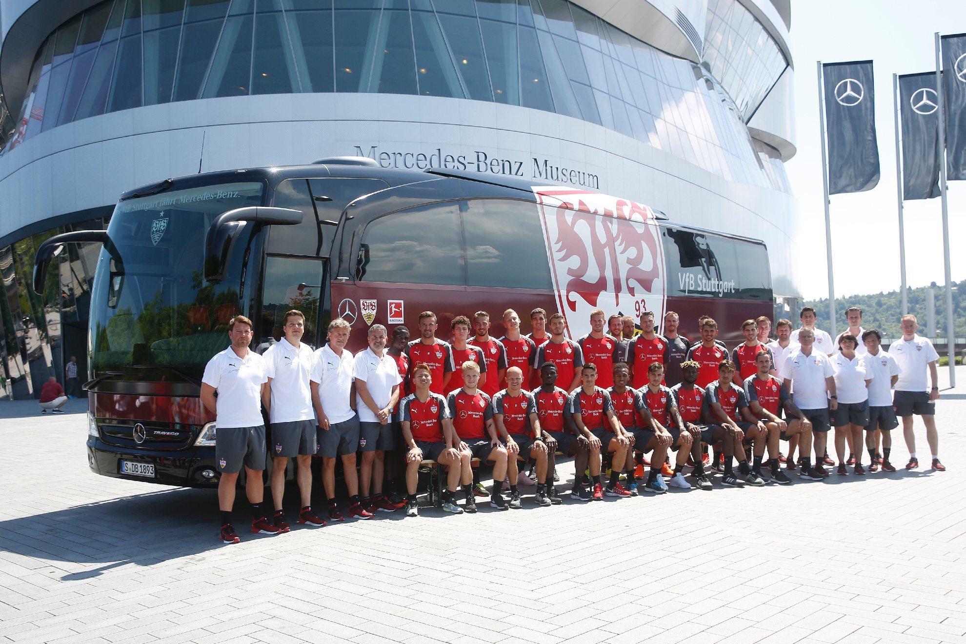 Am Donnerstag präsentierte sich die Mannschaft und das Funktionsteam des VfB Stuttgart vor dem neuen Mannschaftsbus. Beim Fotoshooting vor dem Mercedes-Benz Museum waren auch zahlreiche Kinder anwesend, die zahlreiche Autogramme und Selfies abstauben konnten.
