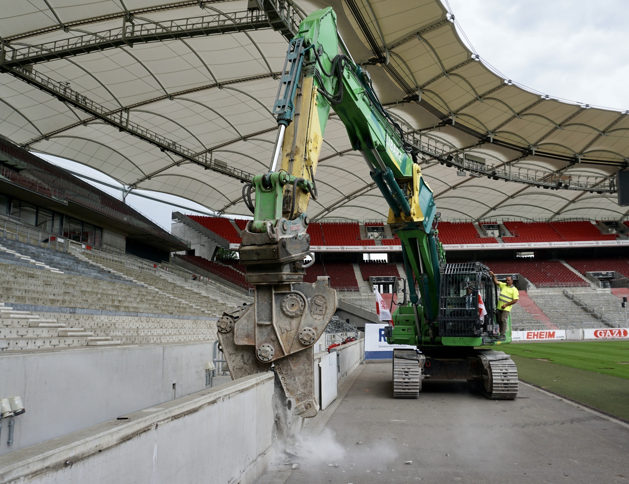 Die bzw. der berühmte Bagger ist am Freitagmittag (03.06.) ins Stadion des VfB Stuttgart eingerollt. Die Mercedes-Benz-Arena wird aufwändig modernisiert, damit das Prunkstück rechtzeitig zur EM 2024 in neuem Glanz erstrahlt. Als Host City darf sich Stuttgart auf fünf Spiele freuen. Darunter vier Gruppenspiele und ein Viertelfinale. Die rund 100 Millionen Euro schweren Umbauarbeiten werden Schritt für Schritt während des laufenden Spielbetriebs laufen, die Kapazität folglich eingeschränkt sein. Was sich für die Fans ändert, haben wir an dieser Stelle zusammengefasst: