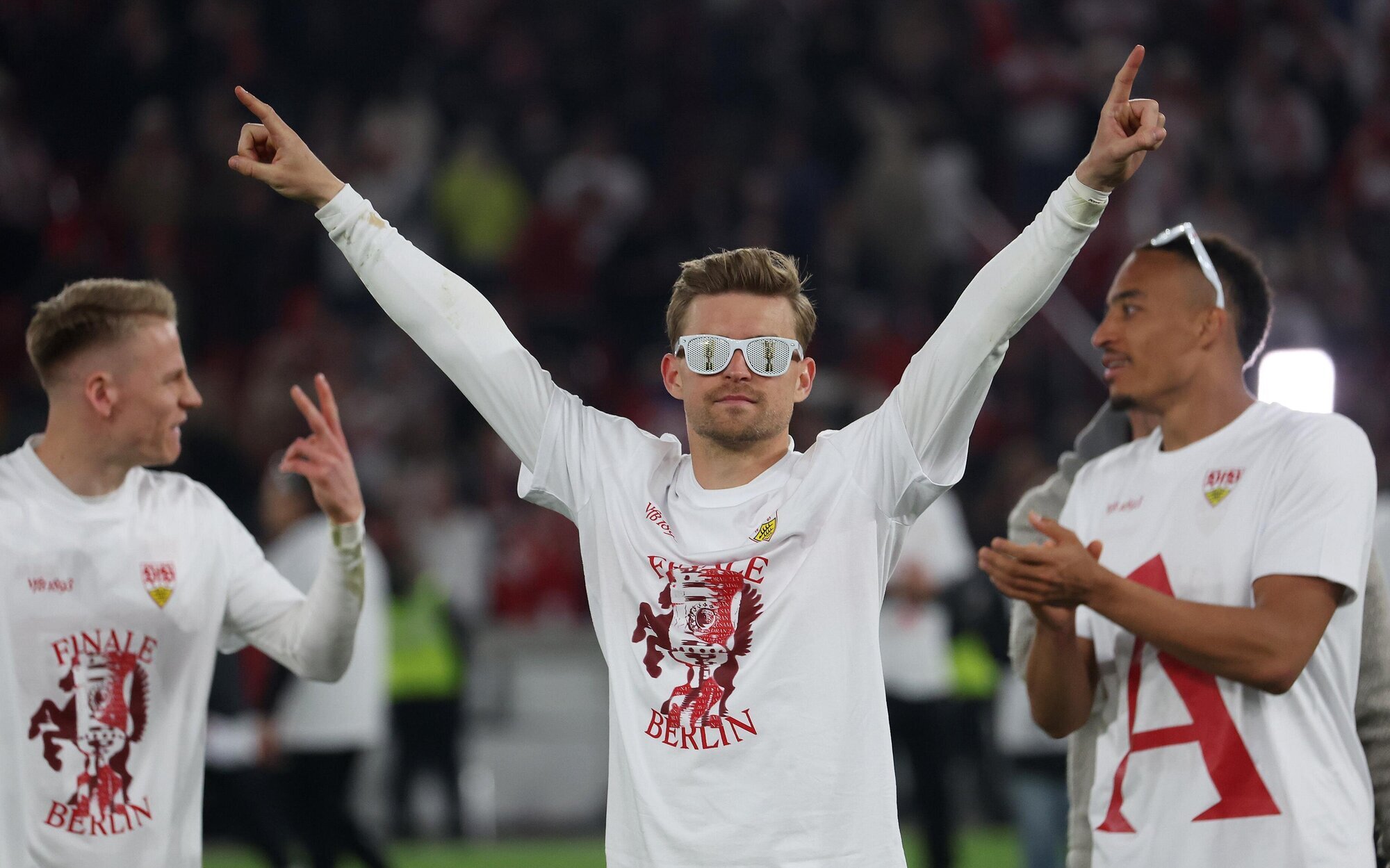 Partybrille und laute Kabinenmusik: So feierte der VfB Stuttgart den Finaleinzug