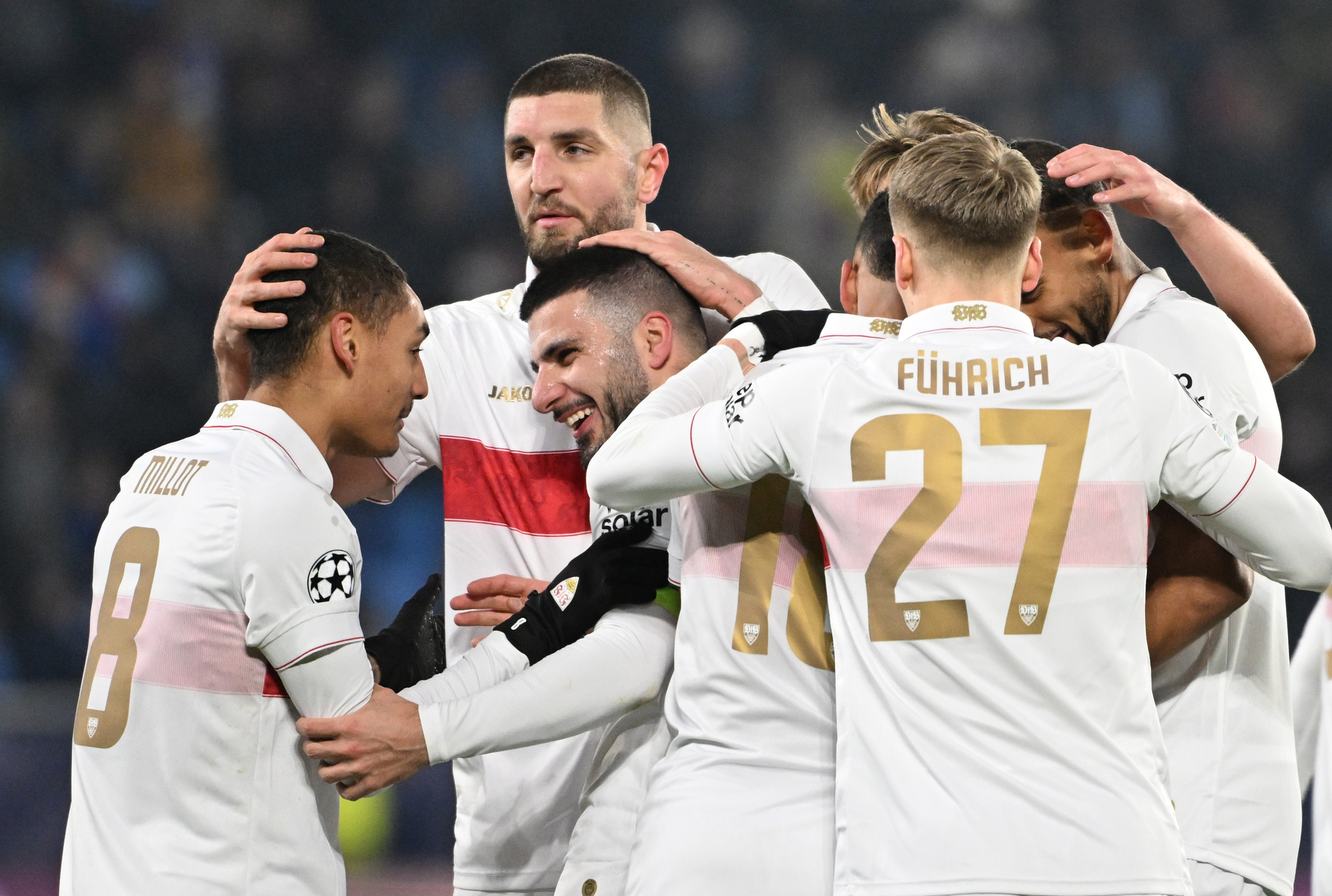 „Es ist noch kein Endspiel“, hatte Hoeneß kurz vor dem Anpfiff betont. Wohlwissend, dass es ohne das passende Ergebnis in der Slowakei kein Finale um den Einzug in die Playoff-Runde gegen Paris Saint Germain in der nächsten Woche geben wird. Dementsprechend druckvoll begannen die Schwaben. Führich scheiterte aus spitzem Winkel an Slovan-Keeper Takáč (2.). Doch die VfB-Führung ließ nicht lange auf sich warten. Leweling war nach Vorarbeit von Undav erfolgreich (11.).