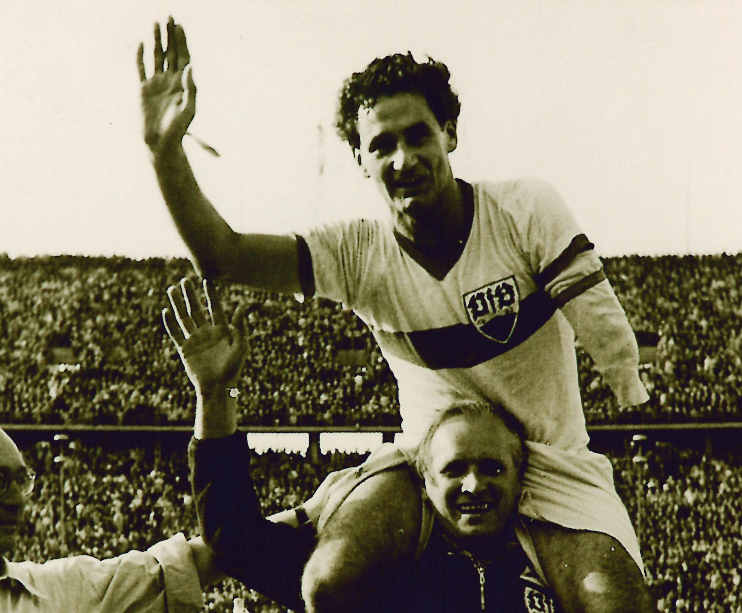 Am Samstag (03.02.) hätte Robert Schlienz seinen 100. Geburtstag gefeiert. Der im Juni 1995 verstorbenen Ehrenspielführer des VfB Stuttgart gilt als eine der größten Persönlichkeiten in der Vereinsgeschichte und als bester Fußballer, den die Schwaben je in ihren Reihen hatten. Er schoss den Klub in die Bundesliga und legte, nachdem er bei einem Autounfall einen Arm verloren hatte ein beispielloses Comeback hin. Bis heute ist er der einzige deutsche Nationalspieler mit Handicap – und gewissermaßen der Gründungsvater des modernen VfB. Erinnerungen an eine einarmige Legende.