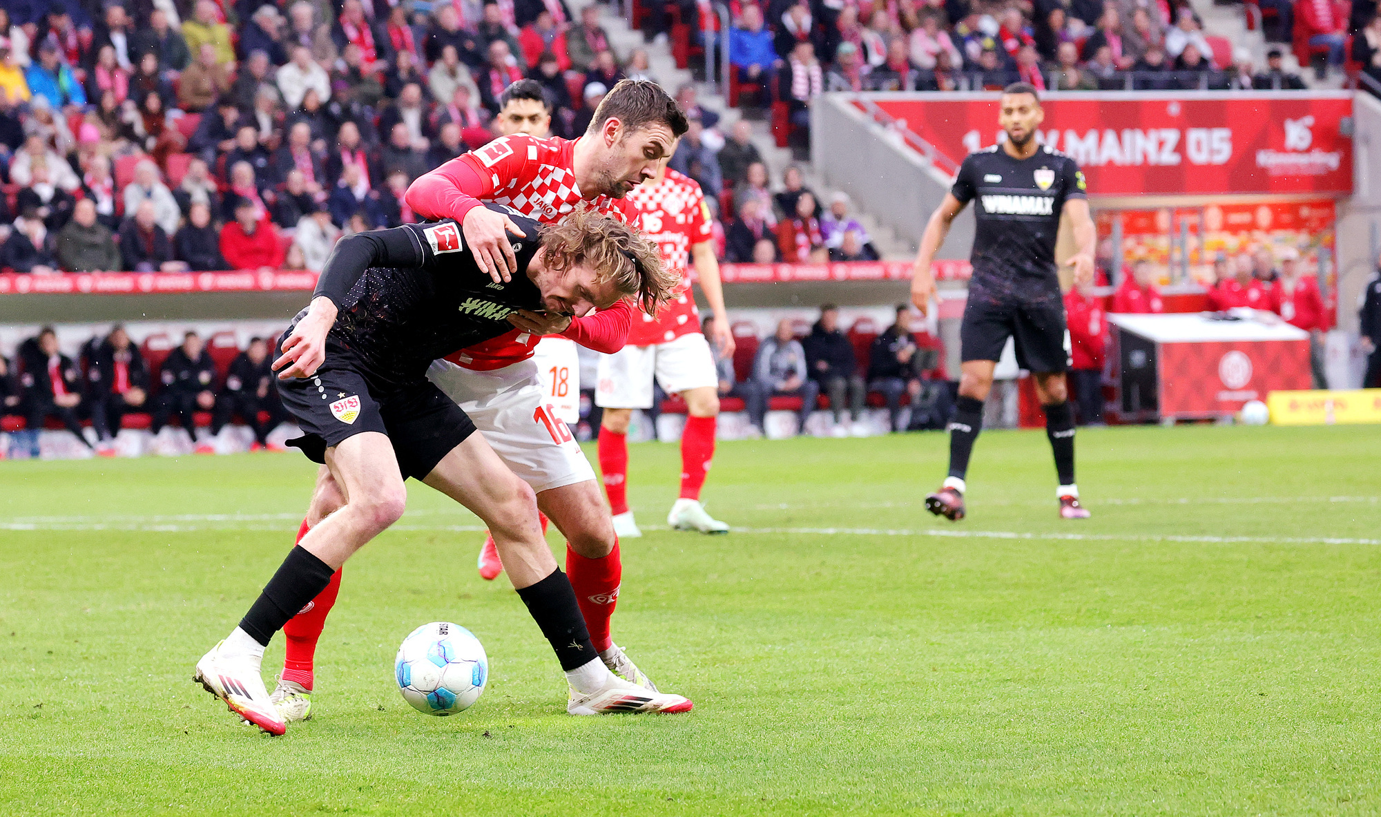 Zu fahrig agierten Atakan Karazor und Co. in der Mewa Arena, streuten im Spielaufbau immer wieder einfach Fehler ein und ließen im letzten Drittel die Zielstrebigkeit vermissen. Bereits nach wenigen Minuten kam Nelson Weiper frei vor Nübel zum Abschluss, doch der Keeper parierte. Auf der Gegenseite verpasste Deniz Undav völlig frei stehend die Führung (14.). In der Folge zogen die Mainzer den Schwaben mit ihrem intensiven Spiel den Zahn und bestraften in der 29. Minute die schläfrige VfB-Abwehr: Weiper traf zur nicht unverdienten Führung. Diesen Rückstand hatten sich die Schwaben selbst zuzuschreiben, ein bis dato schwaches Auswärtsspiel.