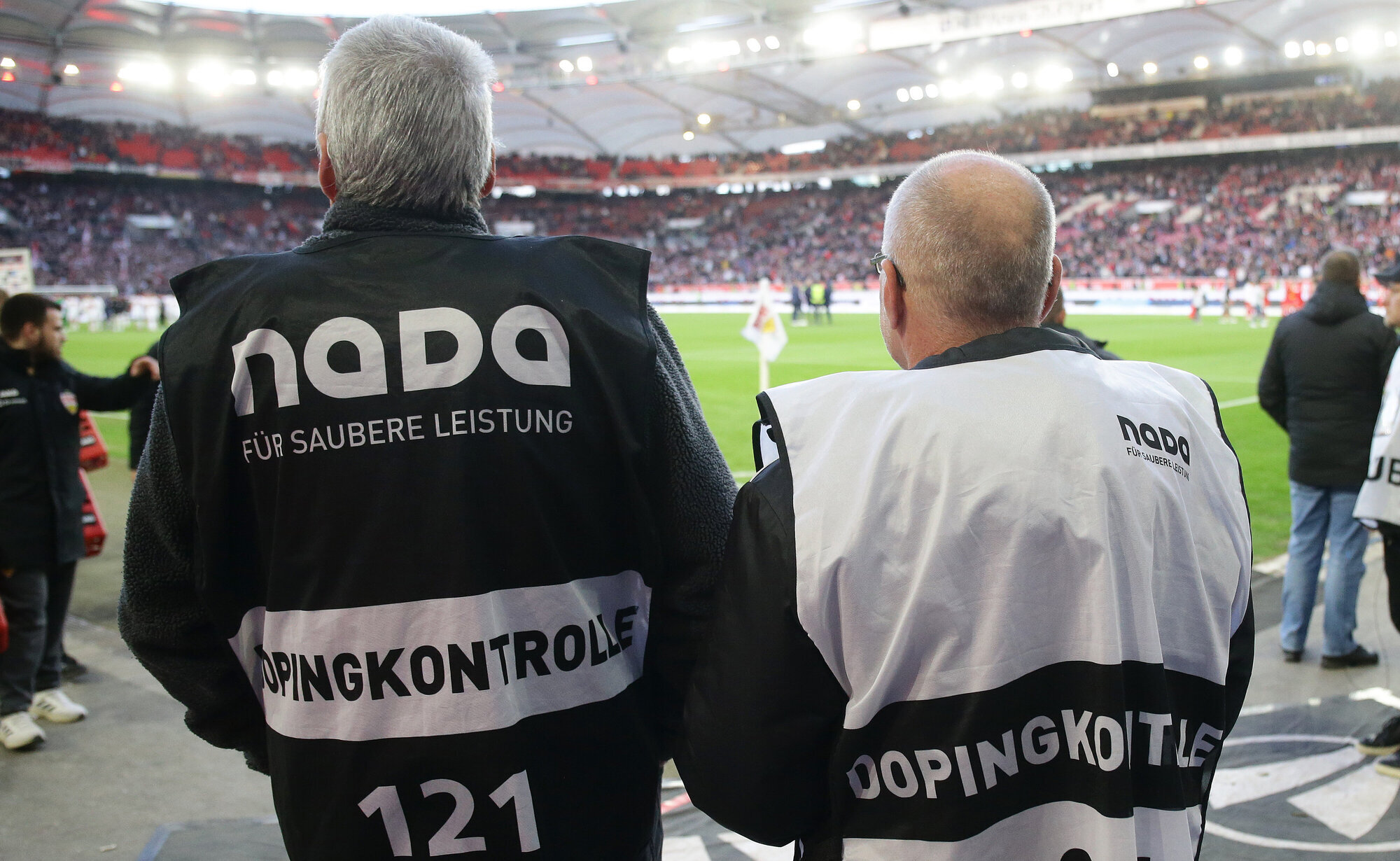 Pro Bundesliga-Spiel müssen zwei VfB-Profis und zwei Spieler der gegnerischen Mannschaft zur Dopingkontrolle. Aus diesem Grund sind bei jedem Spiel zwei Chaperone und ein Dopingarzt sowie dessen Assistent im Einsatz. „Wir besprechen in der Halbzeit, welche Spieler zur Kontrolle müssen und teilen diese unter uns auf“, erklärt Beck. „Nach dem Spiel schnappen wir uns dann direkt die Spieler und begleiten diese, bis sie eben Pinkeln müssen.“ Die VfB-Profis kennen den Oeffinger inzwischen und reagieren „total entspannt“, wenn er nach dem Spiel auf sie zugeht. „Das sind alles Profis, die wissen, warum ich das machen muss.“