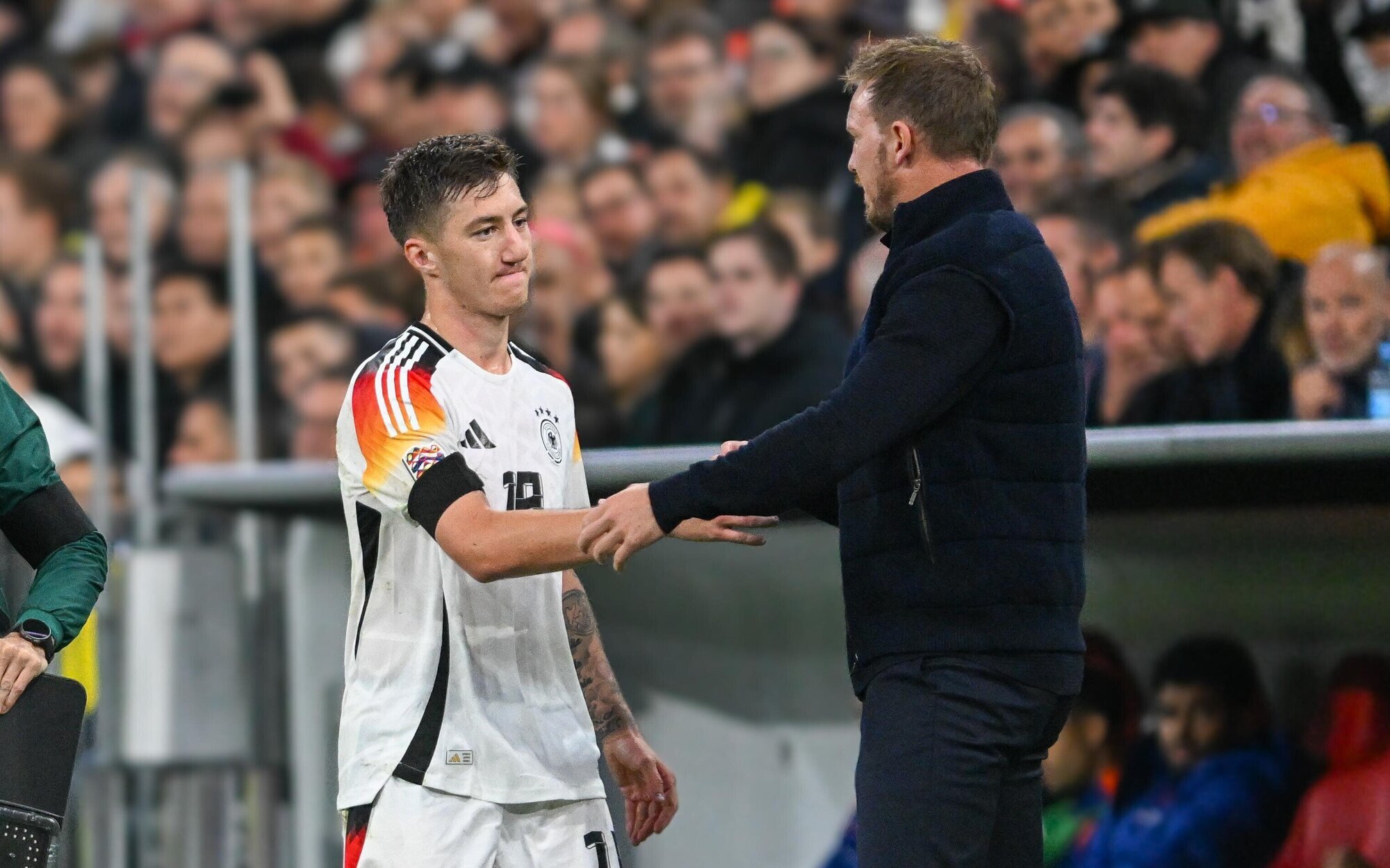 Im Laufe des Sonntags wurde bekannt, dass Aleksandar Pavlovic vom FC Bayern die anstehenden Länderspiele verpasst. Den 21-jährigen Sechser sieht Julian Nagelsmann nach eigener Aussage vor Angelo Stiller, auch was „inhaltliche Themen“ angeht, so der Bundestrainer auf der Pressekonferenz am vergangenen Donnerstag. Da Pavlovic mit Hüftproblemen vorerst passen muss, rutscht der VfB-Profi doch noch in den Kader. Und am Montagmittag wurde der nächste – aus Sicht von Julian Nagelsmann – schwerwiegende Ausfall bekannt: Felix Nmecha fällt mit einer Außenbandverletzung im rechten Knie mehrere Wochen aus.